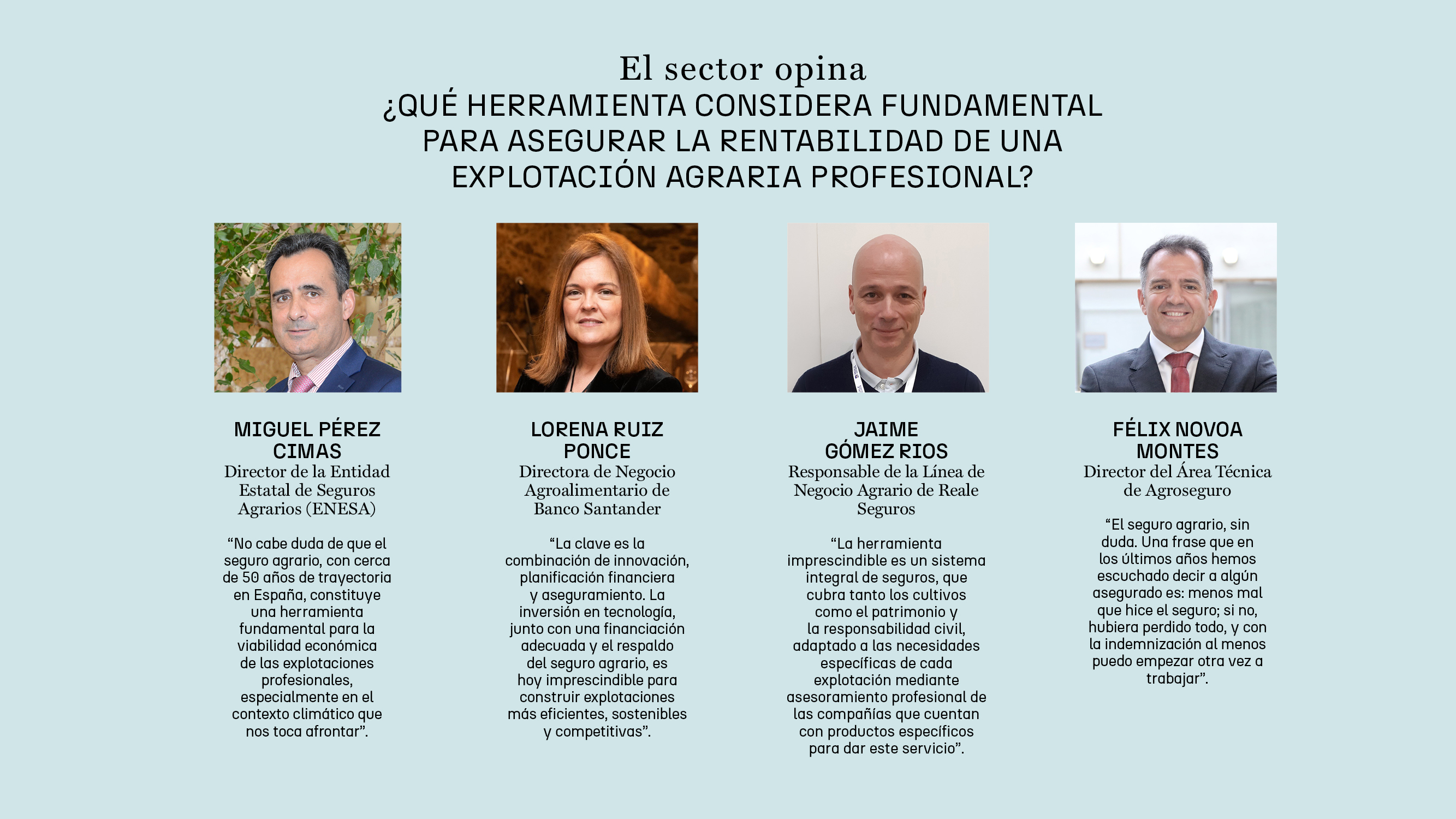 Realmente es la combinación de estas dos cosas (financiación especializada y seguros agrarios adaptados) la clave para asegurar la rentabilidad y continuidad de las explotaciones, especialmente en un escenario de creciente incertidumbre meteorológica. Jaime Gómez (responsable del segmento de Negocio Agrario de Reale Seguros) lo explica: “El incremento simultáneo tanto de la contratación como de la siniestralidad en los seguros se deben principalmente a las adversidades climáticas y al proceso de profesionalización que está experimentando el sector. Para Reale Seguros, esto representa un reto estructural significativo para todo nuestro porfolio de seguros específicos para el sector primario al tiempo que confirma la necesidad indiscutible de contar con estas herramientas. El seguro se ha convertido en un elemento imprescindible, pues permite que el agricultor no tenga que afrontar en solitario las pérdidas y pueda mantener la continuidad económica de su explotación, además tenemos el sistema de seguros agrarios que ha demostrado una capacidad constante de adaptación, ajustando sus garantías, ofreciendo módulos completos, mejorando las estimaciones de daños y agilizando los procesos de peritación para responder con mayor rapidez a las necesidades del sector. Este aumento en la contratación también es reflejo de una mayor concienciación por parte de los profesionales agrícolas, que ahora comprenden que el seguro agrario no solo asegura sus producciones, sino que también facilita el acceso a financiación y les permite planificar la explotación con un nivel mínimo de ingresos garantizado”.